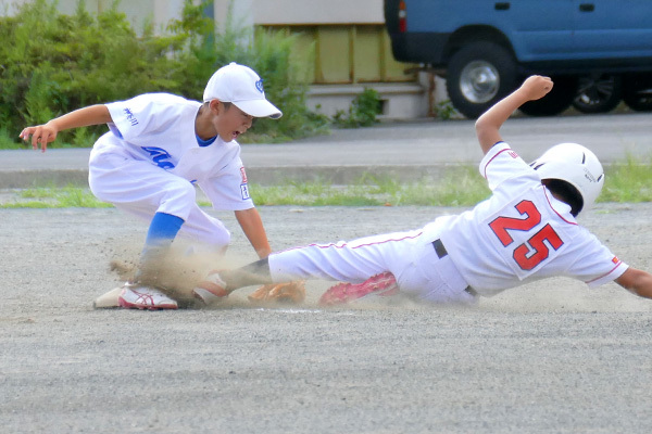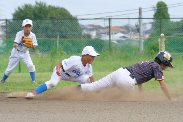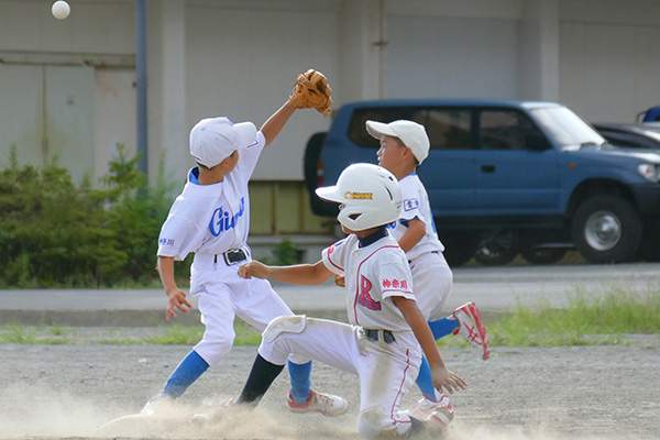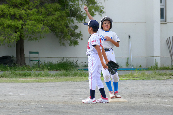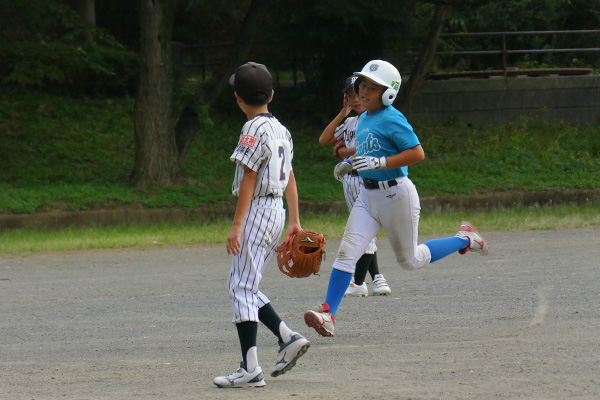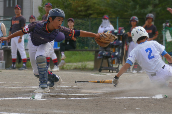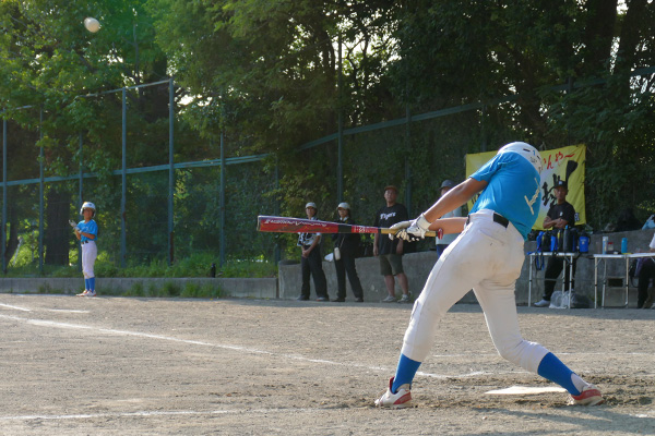 大会初戦は何があるか予断を許さない中、開始早々右飛の守備範囲に“ユーゴピア”がおじゃま虫すると、次打者の左飛定位置の打球にやたら前進守備していた“ケータリング”の頭上通過と、緊張感にも程がある。これには“ASA-KONG”&ざーます隊の皆様もヒートアップ、顔面も紅潮気味だ。さらには小技も防げず挙句は2点タイムリーされるわ自爆の連鎖だ。意気消沈、子羊モード全開で迎えると先頭“ユーゴピア”が罪滅ぼし「償い弾」で1点を返すと、“口先きコーシー”が左前打、“ヒーローや”、“ダイキンマン”、“SHOW-TIME”が連続安打で続き、さらに敵失、“ケータリング”の進塁打、そして“ユーゴピア”の二塁打と打者一巡の8得点で優位に立った。しかしとても安全圏とは言えないのが少年野球。二回表、8番打者に中前に返されると次打者に合わされる。が、これがショート“口先コーシー”へのライナー。一塁に転送し併殺完成でピンチを切り抜けた。これで流れを止めると三回裏、“パナ”、“ニッティ―”連続四球、“ユーゴピア”の猛打賞などこの回4得点で試合終了。“ダイキンマン”もガス欠することなくマウンドを守り切った。
