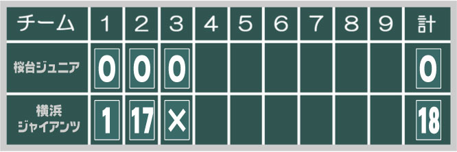 先週の“お仕置きコーシー”から“ハナタカコーシー”にシフトチェンジした投球に「☆星のコーシ様☆」と自画自賛。勘違いにもほどがあるぜ。初回いつもの「タッチアップできない病」でリズムがつくれない。今回は“ユーゴピア”が演じてみせた。さすがに子羊たちも察したか、生きるために必死をこいた。二回裏、連続四球を足掛かりに“ニッティー”、“ハヤブサ”が連打。さらに一死一塁で“ヒーローや!”のランニング弾など打者二巡超えで17得点。あいにくの小雨が降り続く中だったが集中力を切らさなかったのが勝因だろう。地区リーグ後半戦、なにがあるか分からない。神に祈ろう。