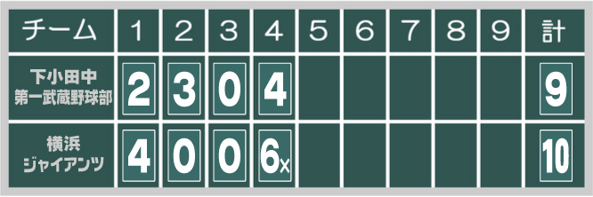 9-10×で逆転サヨナラ勝利(12:30~14:25 桂台公園)。