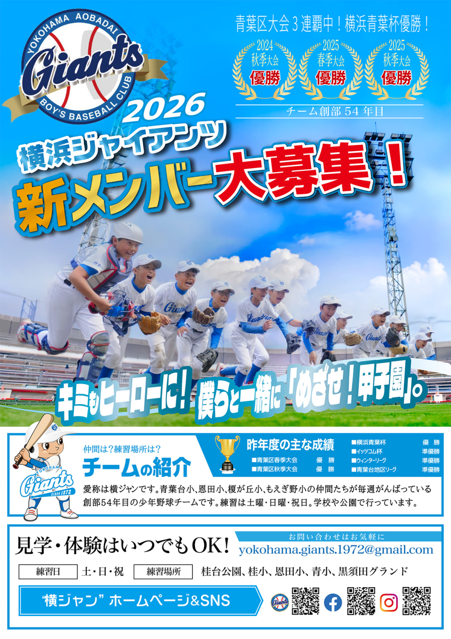 横浜市青葉区少年野球連盟所属|横浜ジャイアンツ
