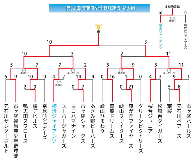 1回戦vsスーパージャガーズ 4-2で勝利。 2回戦vs市ヶ尾シャークス 7-2で勝利。 準決勝vs榎デビルス 3-10で敗戦。 3位決定戦vs藤が丘ファイヤーズ 10-0で勝利。