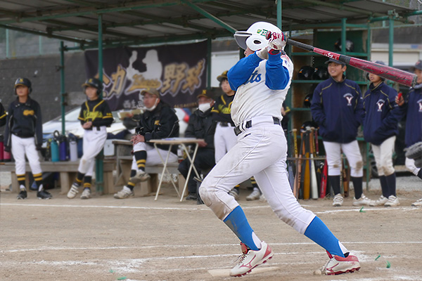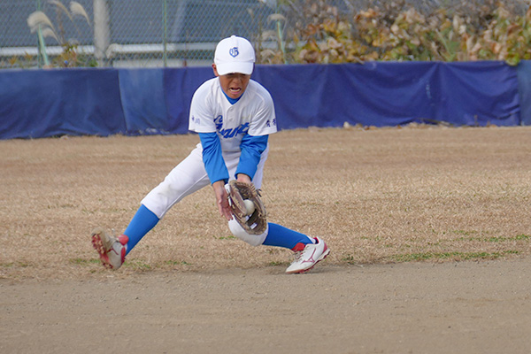 6年生最後の大会の1回戦は“ユーゴピア”午後合流ということで、しっかり勝ちに行こうとスタート。初回先頭を三振に切って取る“ダイキンマン”。その後四球・二盗、三振で二死二塁。ここで4番の適時打で先制点を与える。その裏“SHOW-TIME”初球死球、これが功を奏し二盗、暴投からの一気生還で同点。これで流れが来たかと思われたが、双方二回、三回凡打の山で次の1点取った方がかなり有利な展開に。そして迎えた四回裏、一死から“ダイキンマン”死球、捕逸で二進、“パナ”三振も“ニッティ”が7球粘ってからの左前打で“ダイキンマン”息を切らして生還。これが勝負の分かれ目のはずだったが最終回に異変が。五回二死からマウンドに上がった“バクバクコーシー”は先頭を出すと4番も敬遠で一死一二塁。ここでおあつらえの二ゴロに打ち取るが“ニッティ”が手につかない。一死満塁で張り詰めた空気の中、次打者三振で「ツーアウト!」。三塁側応援団の緊張もマックス状態だ。クリスマスには身バレするという小競り合い系異端コンビ“なによ・なにさ”も「凶器」を手に熱血応援、ざーます隊長ASA-KONGも声がだみ声に。そしてカウント2-2と追い込んだ5球目、三塁側への当たり損ねとなる。これを投三ともに一瞬躊躇し、“お手玉コーシー”が慌てて駆け下りるが間に合わない。同点やむなしだったが、間に合わない一塁へ悪送球のおまけをつけちゃいました。これで二走も生還で一転追いかける展開に。こうなると本来の子羊モードに急降下。あっけなく引っ掛け倒し三者凡退で今季終戦と相成りました。