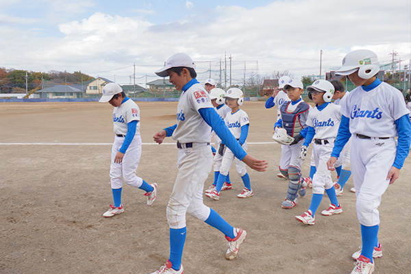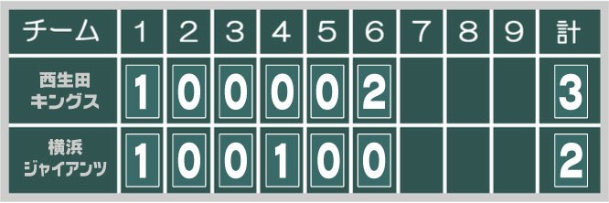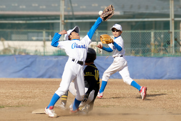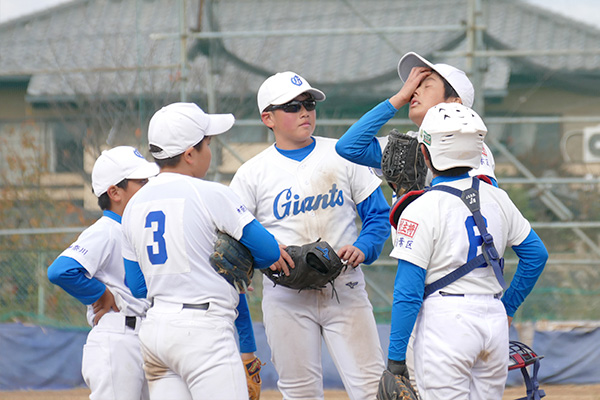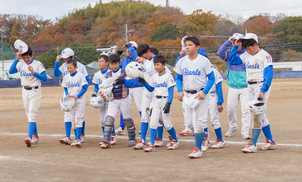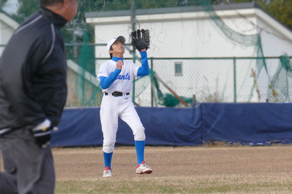 6年生最後の大会の1回戦は“ユーゴピア”午後合流ということで、しっかり勝ちに行こうとスタート。初回先頭を三振に切って取る“ダイキンマン”。その後四球・二盗、三振で二死二塁。ここで4番の適時打で先制点を与える。その裏“SHOW-TIME”初球死球、これが功を奏し二盗、暴投からの一気生還で同点。これで流れが来たかと思われたが、双方二回、三回凡打の山で次の1点取った方がかなり有利な展開に。そして迎えた四回裏、一死から“ダイキンマン”死球、捕逸で二進、“パナ”三振も“ニッティ”が7球粘ってからの左前打で“ダイキンマン”息を切らして生還。これが勝負の分かれ目のはずだったが最終回に異変が。五回二死からマウンドに上がった“バクバクコーシー”は先頭を出すと4番も敬遠で一死一二塁。ここでおあつらえの二ゴロに打ち取るが“ニッティ”が手につかない。一死満塁で張り詰めた空気の中、次打者三振で「ツーアウト!」。三塁側応援団の緊張もマックス状態だ。クリスマスには身バレするという小競り合い系異端コンビ“なによ・なにさ”も「凶器」を手に熱血応援、ざーます隊長ASA-KONGも声がだみ声に。そしてカウント2-2と追い込んだ5球目、三塁側への当たり損ねとなる。これを投三ともに一瞬躊躇し、“お手玉コーシー”が慌てて駆け下りるが間に合わない。同点やむなしだったが、間に合わない一塁へ悪送球のおまけをつけちゃいました。これで二走も生還で一転追いかける展開に。こうなると本来の子羊モードに急降下。あっけなく引っ掛け倒し三者凡退で今季終戦と相成りました。